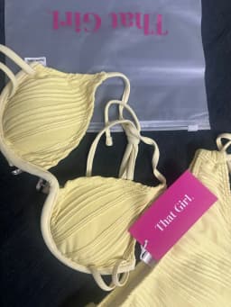 Lace-Up Yellow Pleated Bikini Set